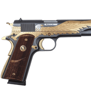 TISAS M1911 Golden Eagle – Classic Semi-Automatic Pistol in 5″ in Titan Color with golden engravings (PVD)
